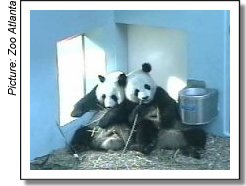If I had known about Hsing-Hsing and Ling-Ling back in 1990 and gone to see them at the National Zoo, would my love affair with the giant panda have started a decade earlier? I don’t know, but I do believe everything happens for a reason - my visit to Washington, DC in 1990 without knowing about its famous giant panda residents, my decision to focus on the species for Y2K, etc. Even Hsing-Hsing’s death happened for a reason. I know many giant panda lovers mourned his death and wondered why he had to be put to sleep. But remember, he did live to a ripe old age for a giant panda - he was 28 when he died, the equivalent of 112 in human age - and he was suffering so it was time for him to go. But his death opened the door for the National Zoo to apply for the loan of another pair of giant pandas for their conservation research study. It is appropriate that exactly a year to Hsing-Hsing’s death on 28 November 1999, a team from the National Zoo were on their way to China to take delivery of the two latest additions to the giant panda population in the States - Tian Tian, male, 3½, and Mei Xiang, female, 2½. They arrived at the National Zoo on 6 December 2000 to undergo a 30-day quarantine period before going on public display. As I write this in early January 2001, Tian Tian and Mei Xiang are just days away from their debut in the States. By the time this eventually sees the light of day, they would have been delighting visitors to the National Zoo for about five months! I wish I could be there to see them “live”. | Even though I am not able to be in Washington, DC, to see Tian Tian and Mei Xiang in person, I have been visiting them almost every evening Malaysian Time since the middle of December 2000. The wonders of the Internet and the generosity of the Zoo's giant panda conservation sponsors (Discovery Channel's Animal Planet and FedEx) have provided for a bank of 20 "live" web cams to display the pair on the Internet way before their actual "live" debut. Similar cam set-ups at San Diego Zoo and Zoo Atlanta have allowed me to keep track of Hua Mei and Bai Yun at the former and Lun Lun and Yang Yang at the latter.