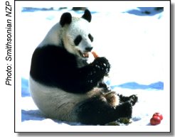 Since January 2000, I have learned many things about the giant panda. It is amazing how, once I decided on my topic of interest for the year, the information came to me almost effortlessly. For example, the February issue of the Asian edition of The Reader’s Digest had on its cover a picture of Dr Pan Wenshi, noted Chinese biologist dedicated to giant panda study and conservation, and one of his "babies", Da Bao. Over the next two months (February and March), the National Geographic channel on Astro (Malaysian satellite television provider) ran and repeated three separate documentaries on the giant panda. So, within a relatively short time, I learned a lot about the giant panda. In particular, I was totally amazed by how small they are at birth, how high their infant mortality rate, and how threatened they are by extinction.