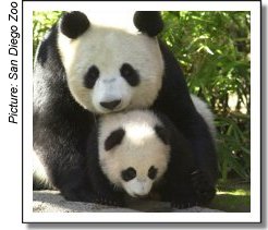 Early in the year, I was reading the book God is in all the Small Stuff and decided to take up the challenge to "choose a topic of interest and spend the next twelve months learning all you can about it". This was just before the middle of January. I think I decided to focus on something Chinese, and decided giant pandas were Chinese enough. So I did a search on the Net for giant pandas and very quickly came up with the San Diego Zoo's web pages on their giant panda baby, Hua Mei, and her parents, Shi Shi and Bai Yun. Shi Shi is Chinese for "stone" while Bai Yun means "white cloud" in Chinese. Their baby, Hua Mei, was named on her 100th day of birth. Her name, carefully chosen to signify the Chinese and American collaboration in San Diego Zoo's giant panda conservation project, takes one character each from the two names of the two partner countries - Hua, representing China, and Mei, representing America.